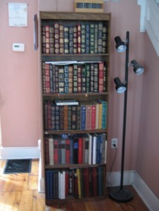 When I downsized my library (I gave about two-thirds of my collection to the used bookstore when I got divorced and had to sell the house), I kept all my leather-bound books, which cost me a pretty penny. I also kept the books that were autographed by the author. I’ve met some famous writers who came speak at the University of Illinois at Chicago for conferences. I usually take their book that I’ve already read and ask the author for his or her autograph.