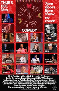 When I started back up, I told myself that I would that I would keep going to open mics even if I never progressed beyond the open mic level. I am now one notch above the open mic level. And I’m starting to feel more comfortable on stage.