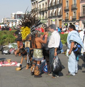 I really love this public square because many Mexicans feel compelled to visit it. El Zócalo is the center of Mexican life. You’ll also see many foreign tourists. Cathedrals, the presidential palace, and colonial buildings surrounding the Zocalo. If you look down in front of the cathedrals, you will see some glass inlaid into the sidewalk revealing the remains of Aztec pyramids below, which the Spaniards razed to construct the cathedral under orders of Hernán Cortés. As a reminder of Mexico’s past, Aztec dancers are ever present near el Zócalo dancing for the public. They will also perform a spiritual cleansing for you. They will cleanse you of any bad spirits that are hindering your happiness and wellbeing. Whenever you see the Aztec dancers, they are always cleansing someone with at least several others waiting in line for their turn.