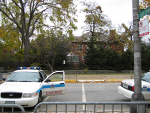 Surprisingly, I was able to park legally at the corner right near a police car that was guarding the closed off intersection leading to his house. As we approached the corner, the police officer exited her squad car and asked if we lived on this side of the block. I said no and she said we would have to walk across the street. Before I left our house, I had no idea where Obama lived other than in Hyde Park, but I figured I’d find his house once I saw all the police cars blocking off the streets. I really thought we would have to walk several blocks. But we were extremely lucky to park so close!