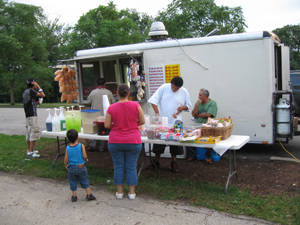 So, imagine my surprise when I returned with my sons to Marquette Park to release the frog (I bet you thought I forgot all about the frog!). Over the past few years the neighborhood has been changing. African-Americans started moving in. Now, Mexicans are moving in, too. Whenever I drive through the neighborhood, I see more store signs in Spanish. Since I don’t spend all that much time there, I wasn’t sure what to expect when I arrived at the park. Marquette Park was filled with mostly Mexicans. Several soccer–actually, fútbol–games were in progress. Unlike the 1970s, all the players were Mexican. Ditto when I drove past the concrete basketball courts. I was also surprised by the Mexican food vendor in the picture above. They sold the usual Mexican food items: elotes, tacos, gorditas, raspados. My son was hungry, so he bought a couple of tacos de carne asada and an elote in a cup. I didn’t even know you could buy elote in a cup! I always buy it on a stick! As Dios intended. But, I’ve also seen pizza in a cup. So why not elote in a cup? And I’m not even going bring up walking tacos here.