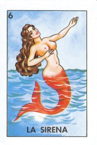 Once, actually, this happened several times, when I called, La sirena, a female student shrieked and said that the mermaid had exposed breasts. She was genuinely offended by the nudity. I didn’t know what to say. So, I looked at the card of La sirena and sure enough she had exposed breasts! I’ve been playing Lotería my whole life and I never even noticed her exposed breasts. To me she was just a mermaid. A cartoon mermaid. All I ever saw was her long hair and her fish tail. I mean, if I saw a real mermaid in person, I wouldn’t be caught staring at her breasts!